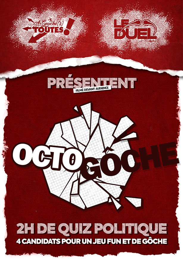 Octogôche, c'est le Grand Quiz Politique de Gôche en mode 2v2. Ambiance fun et gauchisme garantis ! Un jeu de connaissances politiques pointu, une dizaine d'épreuves loufoques, des jeux de mots plus ou moins bons à foison et avec des invités du tonnerre !